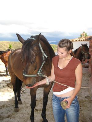 An nem Freitag ist sie in Granada angekommen und wir waren abends nur ein bissl Tapas essen. Samstag sind wir dann nach Guadix gefahren, einem kleinen Örtchen wo sie mal auf nem Pferdehof gearbeitet hat. Den Besitzer wollte sie gerne noch mal besuchen und gleichzeitig fragen ob ich da nicht auch für ein paar wochen arbeiten könnte! Das mit dem Arbeiten hat dann leider nicht geklappt, weil er seinen hof nicht mehr hat und alles ein bissl kleiner geworden ist. Aber die Pferde waren noch da und wir hatten sogar Glück und durften spontan nen Ausritt mitmachen! Oh man, ich bin seit 4 Jahren nicht mehr geritten und dann nur in Jeans und Turnschuhen und auf einem Pferd das...sagen wir, ein bissl hyperaktiv war...!! ;)